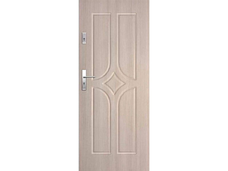 Rama skrzydła wykonana z płyty drewnopochodnej dodatkowo wzmocniona dwoma płaskownikami stalowymi. Wypełnienie – płyta wiórowa otworowa. Drzwi mają podwyższoną izolacyjność akustyczną (Rw=32dB). Płyta zewnętrzna HDF uszlachetniona okleiną DRE-Cell Decor - wykończenie płaskie bądź z frezem dekoracyjnym.