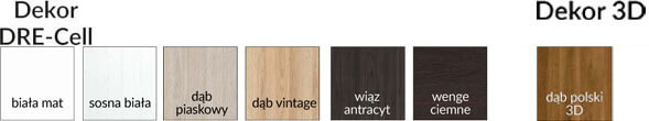 - szyba MAR DRE gr. 4 mm, DECORMAT BRĄZ, DECORMAT GRAFIT lub przeźroczysta