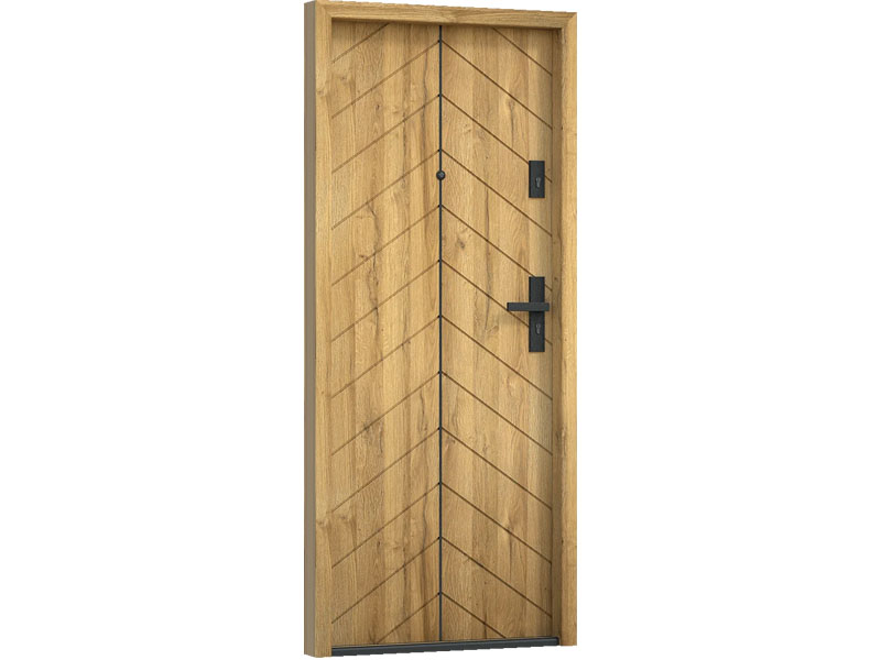 Drzwi Bastion pięknie kontrastują z drewnianą okleiną, nadając drzwiom bardzo nowoczesnego charakteru.