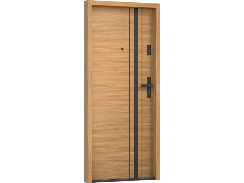 Drzwi Bastion pięknie kontrastują z drewnianą okleiną, nadając drzwiom bardzo nowoczesnego charakteru.
