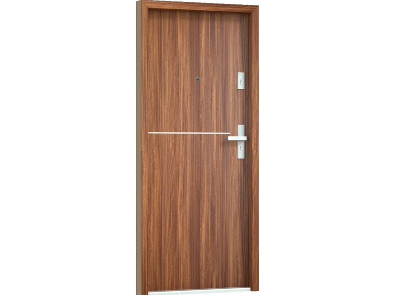 Drzwi Bastion pięknie kontrastują z drewnianą okleiną, nadając drzwiom bardzo nowoczesnego charakteru.