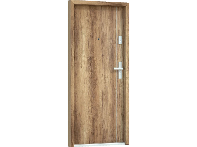 Drzwi Bastion pięknie kontrastują z drewnianą okleiną, nadając drzwiom bardzo nowoczesnego charakteru.