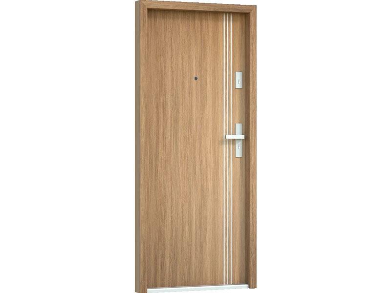 Drzwi Bastion pięknie kontrastują z drewnianą okleiną, nadając drzwiom bardzo nowoczesnego charakteru.