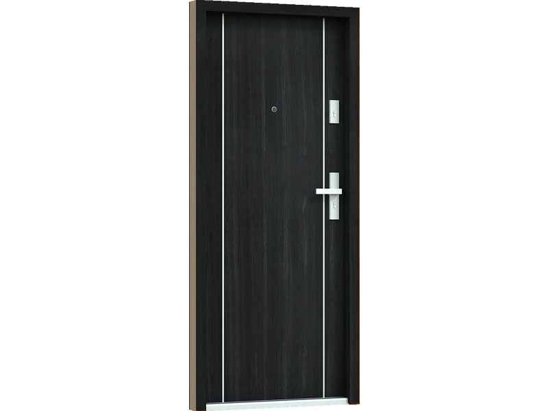 Drzwi Bastion pięknie kontrastują z drewnianą okleiną, nadając drzwiom bardzo nowoczesnego charakteru.