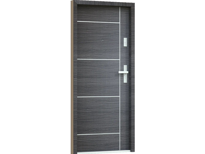 Drzwi Bastion pięknie kontrastują z drewnianą okleiną, nadając drzwiom bardzo nowoczesnego charakteru.