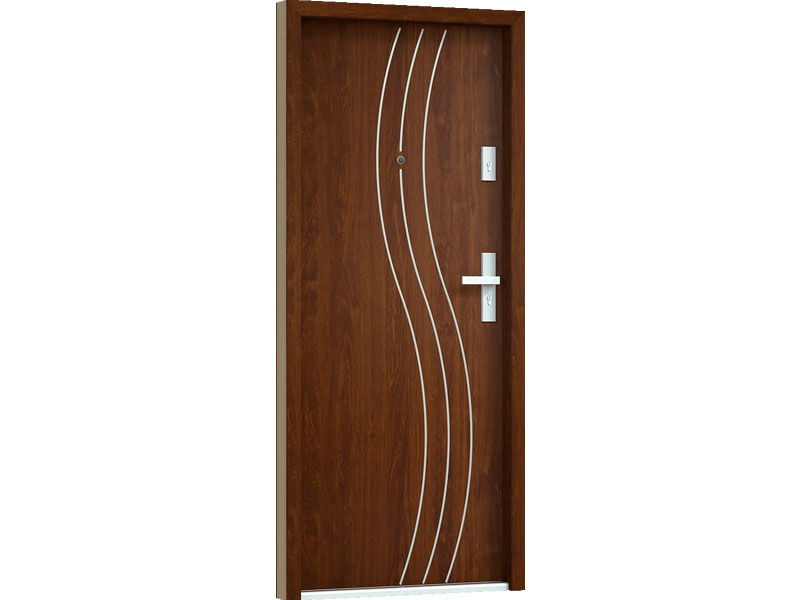Drzwi Bastion pięknie kontrastują z drewnianą okleiną, nadając drzwiom bardzo nowoczesnego charakteru.
