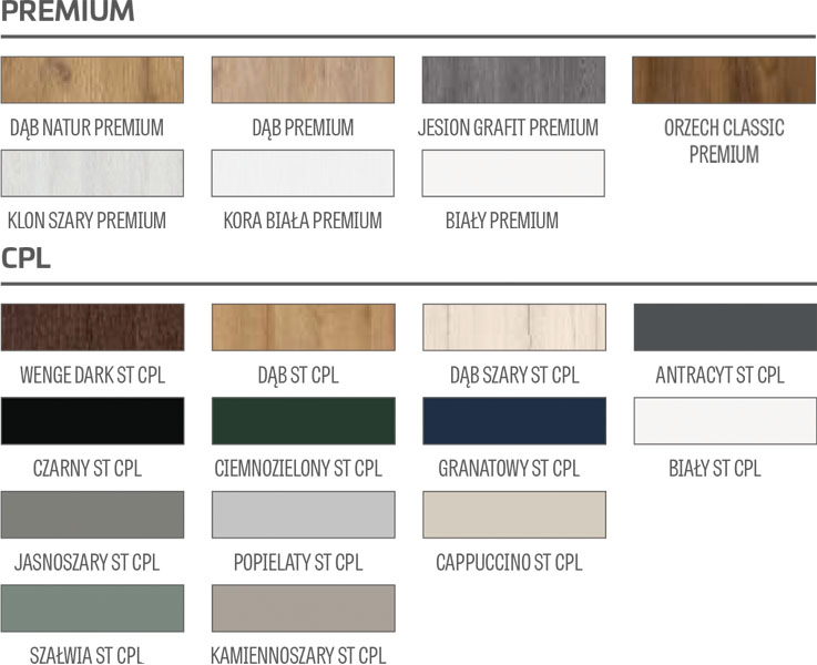 Charakteryzują się wyjątkowo solidną konstrukcją. Wykorzystywana jest tu również nowa technologia oklejania polegająca na unikaniu widocznych miejsc połączeń okleiny. Większa waga skrzydła, mocna konstrukcja, brak widocznych połączeń okleiny, wykorzystanie zawiasów dwuczopowych i solidność wykonania to czynniki wpływające znacząco na estetykę i jakość produktu.
