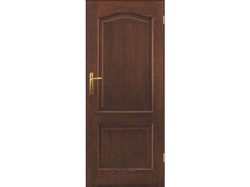 Drzwi zbudowane są z ramiaka drewnianego obłożonego dwiema płytami HDF pokrytymi naturalnymi okleinami. Płycina frezowana, ramiaki oraz płyciny fornirowane.