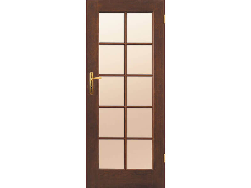 Drzwi zbudowane są z ramiaka drewnianego obłożonego dwiema płytami HDF pokrytymi naturalnymi okleinami. Płycina frezowana, ramiaki oraz płyciny fornirowane.