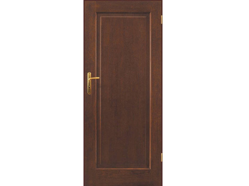Drzwi zbudowane są z ramiaka drewnianego obłożonego dwiema płytami HDF pokrytymi naturalnymi okleinami. Płycina frezowana, ramiaki oraz płyciny fornirowane.