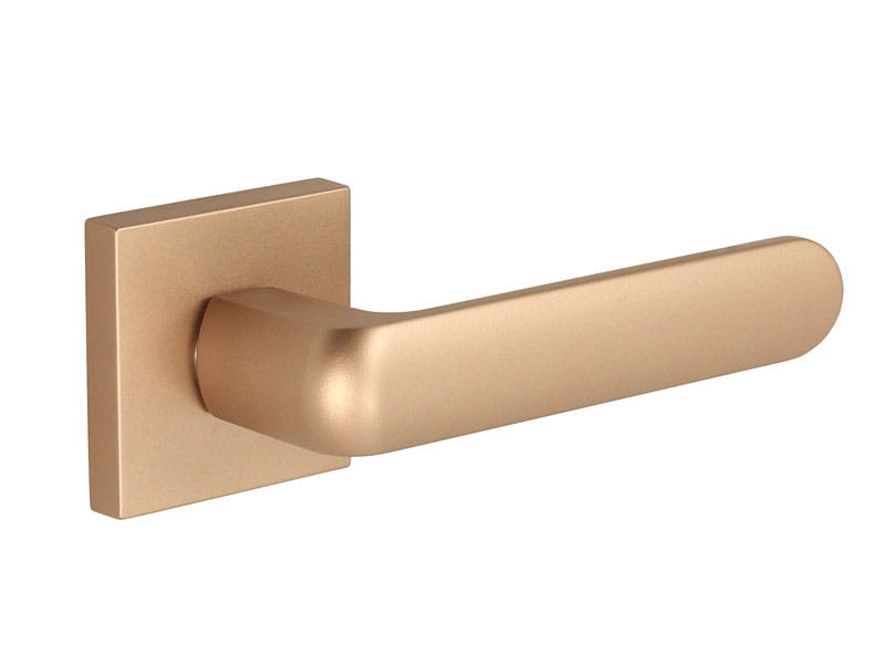 Klamka wewnętrzna Roothkin Ikar QR14 - rozeta kwadratowa, złotoróżowy matowy