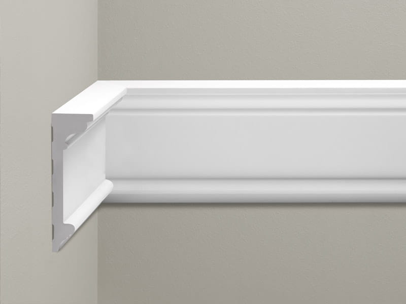 Listwy naścienne gładkie stanowią idealny element wykończenia i dekoracji wnętrz, nadając im indywidualny styl. Dzięki szerokiemu wyborowi form i profili - od klasycznych po nowoczesne - potrafią korzystnie zmienić proporcje oraz charakter wnętrz. Listwy dekoracyjne są nieodłącznym elementem wykończeniowym przy zastosowaniu kasetonów i paneli boazeryjnych, przy dekoracji ścian malowanych lub pokrytych tapetą. Produkt jest wykonany z poliuretanu. Poliuretany to związki, których podstawową właściwością jest bardzo dobra odporność na działanie wody, a także innych substancji typu oleje, smary, rozcieńczone kwasy i zasady. Poliuretan nie poddaje się łatwo uszkodzeniom mechanicznym, co zwiększa komfort montażu i użytkowania sztukaterii.
