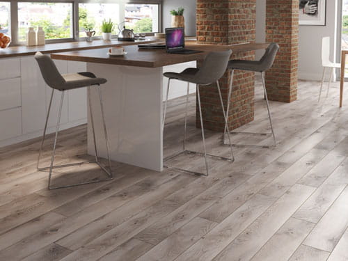 Frezowane krawędzie, dębowe dekory i struktura z wyczuwalnym układem usłojenia sprawiają, że panele po ułożeniu prezentują się wyjątkowo naturalnie. Dzięki bardzo wysokiej klasie ścieralności podłoga będzie służyć przez wiele lat.
